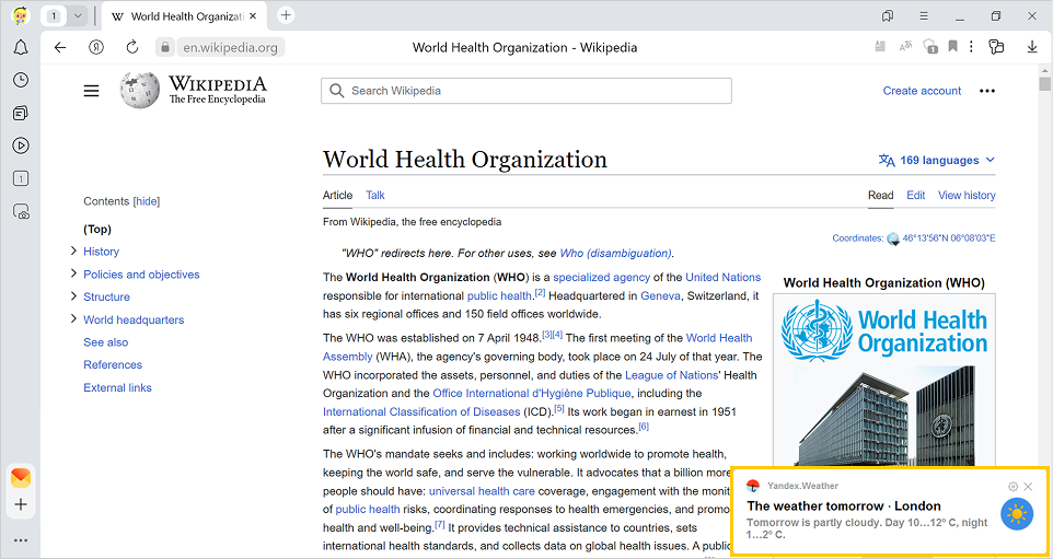 Websites can send notifications about news, comments, updates, and other events. Sites usually request permission to send notifications, but sometimes they can do this without permission. In Yandex Browser, you can allow or block notifications from a specific website, or disable notifications from all sites.