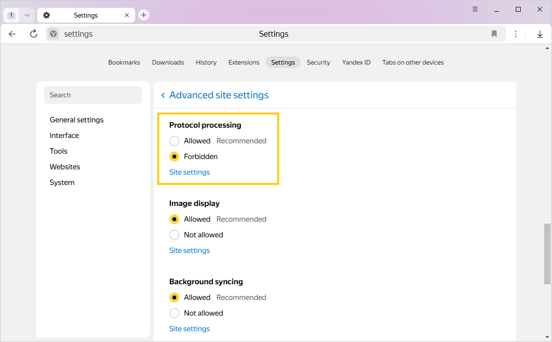 If you do not want a program or web service to open when you click a special link, prohibit protocol handling on all websites: