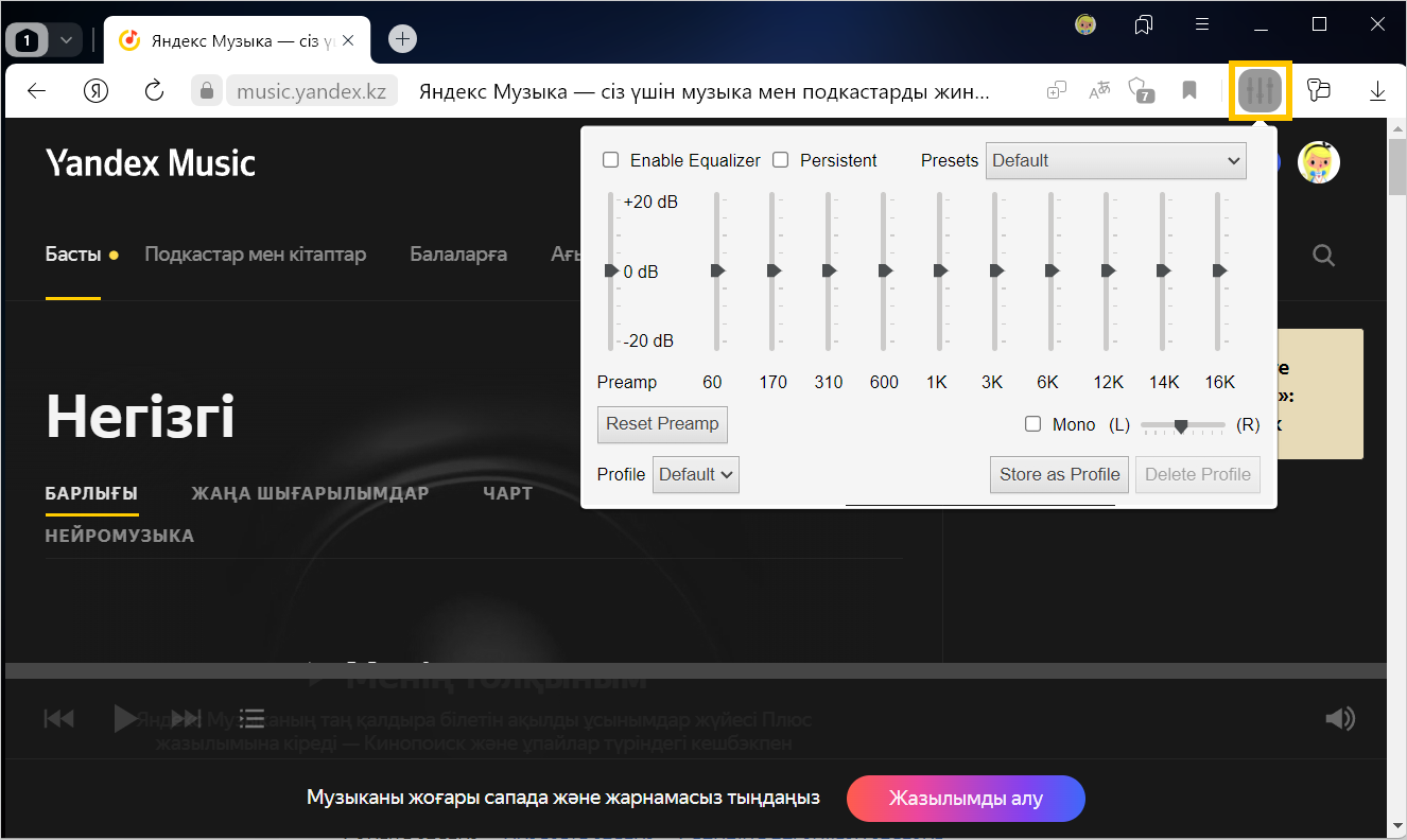«Яндекс Элементтері» (Пошта, Ауа райы, Кептелістер және Диск) кеңейтімдері енді дамытылмайды және орнатылмайды, олардың дұрыс жұмысына кепілдік жоқ. Бұл сервистерді веб-қосымшалар ретінде орнатыңыз.