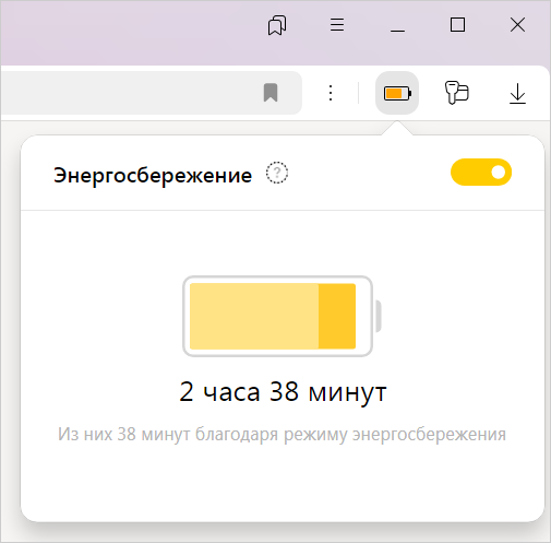 Режим энергосбережения в Яндекс Браузере экономит заряд батареи. Он позволит вам работать на отключенном от электросети ноутбуке на час дольше.