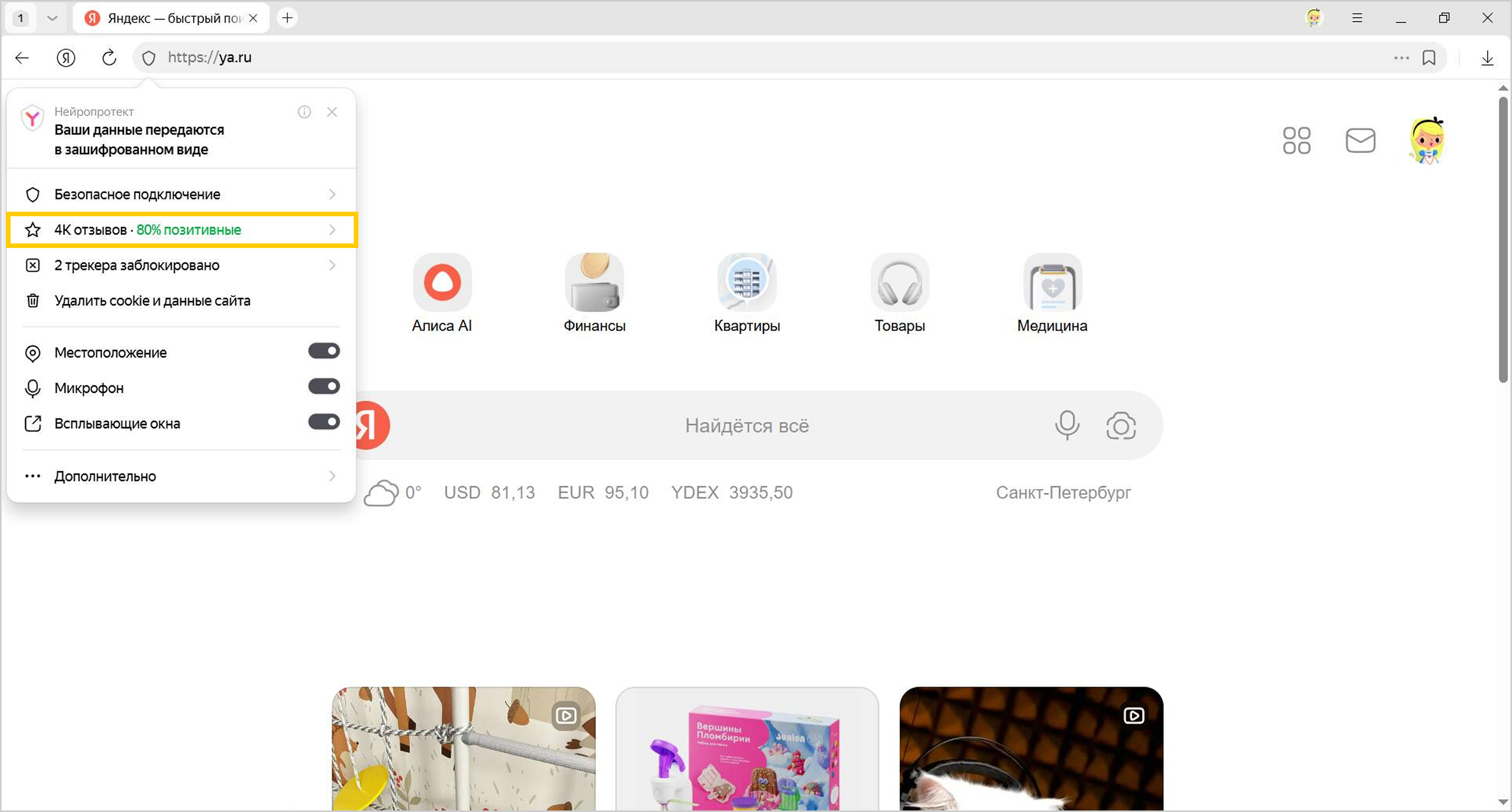 Чтобы посмотреть отзывы, в Умной строке нажмите .