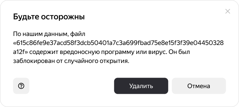Если загружаемый файл содержит вредоносное ПО, Браузер заблокирует его. Зараженный файл помечается значком , а при попытке открыть его вы увидите предупреждение.