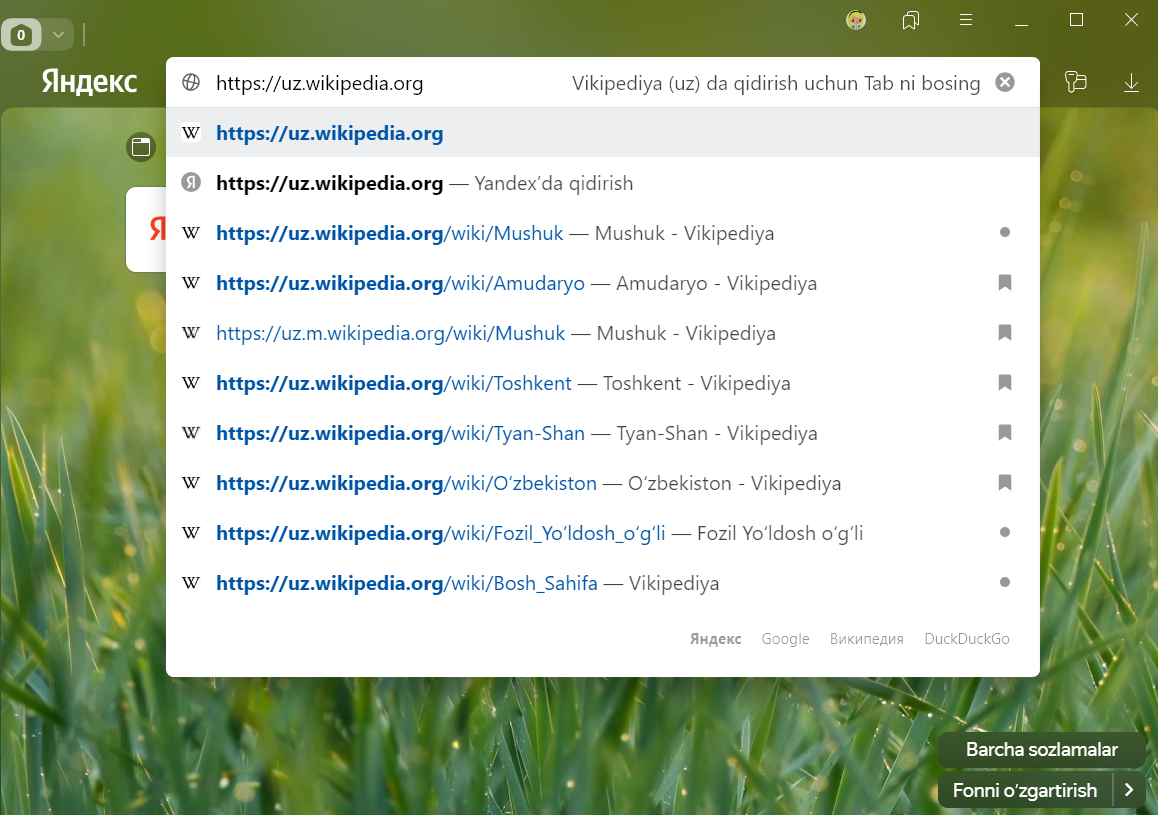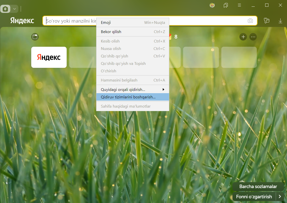 Qidiruv tizimi Aqlli satr, yangi varaq ekrani va kontekst menyusida o‘zgaradi.