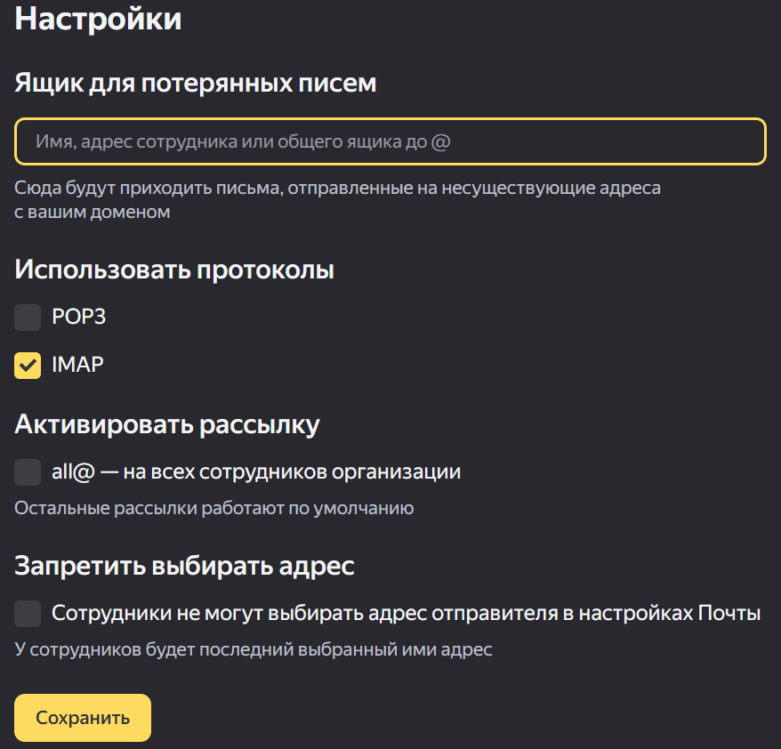 Если веб-интерфейс и приложение не отвечают требованиям вашей организации, вы можете настроить работу с корпоративной почтой через почтовые клиенты. Для этого нужно включить почтовые протоколы и отправить пользователям инструкции по настройке.