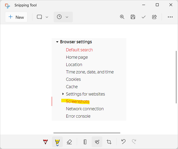 Choose a mode: rectangular or free-form snip. Press New and take a screenshot of a window or the entire screen.