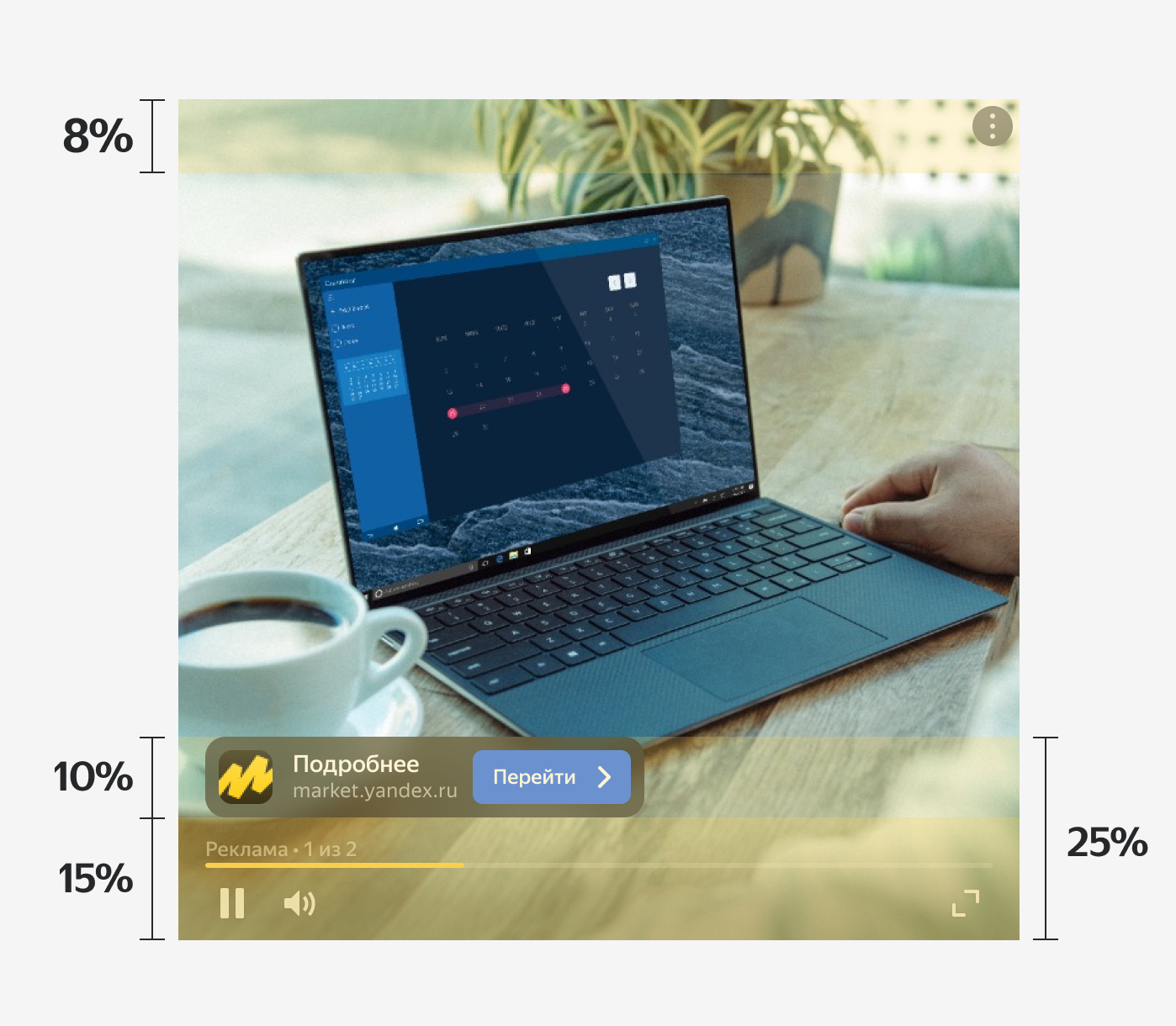 - We recommend that you place your key ad content in the center of the video, with a 20% buffer zone at the bottom of the frame.