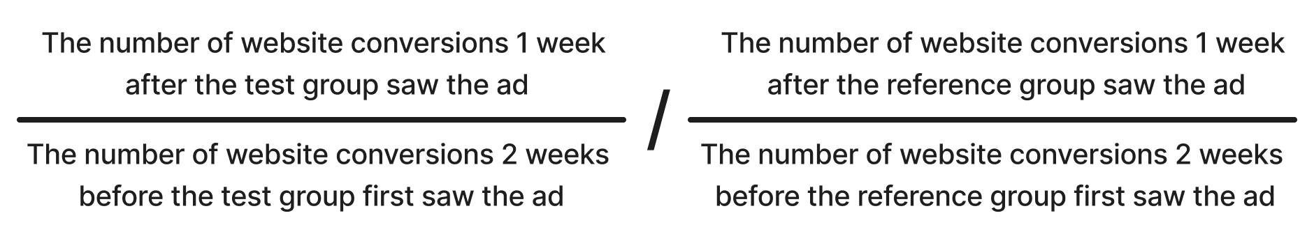 From the campaign's target audience, a test group (90%) and a control group (10%) are selected. The test group consists of users who have seen the ad. The control group is made up of users in the same audience who are intentionally not exposed to the ad. A control group is created through a virtual auction.