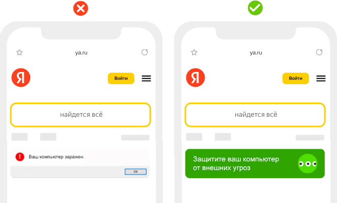 Баннер не должен маскироваться под элементы пользовательского интерфейса — например, под системное окно Windows.