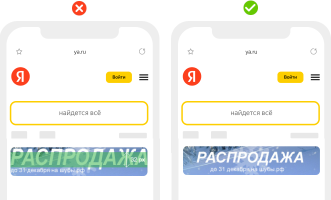 Баннер или его отдельные элементы не должны мигать, отвлекая пользователя.