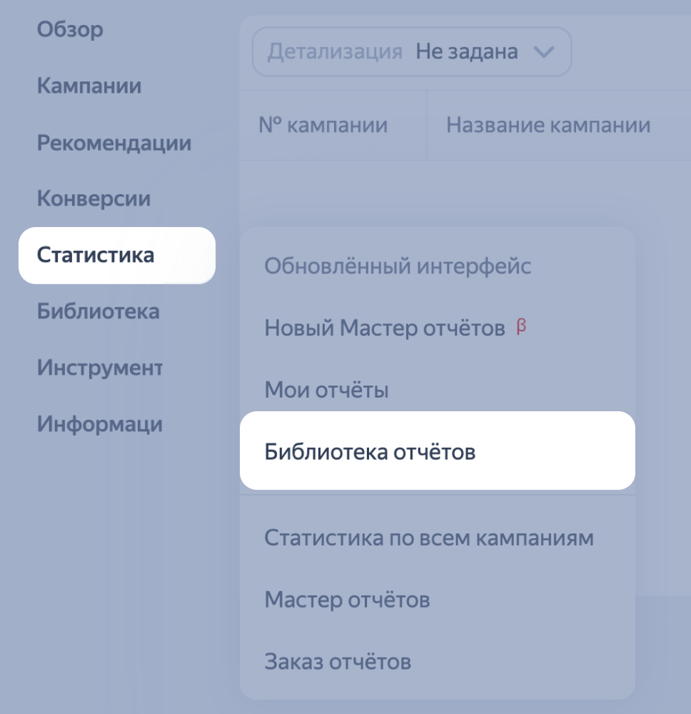 Чтобы перейти в библиотеку, в разделе Статистика выберите Библиотека отчётов.