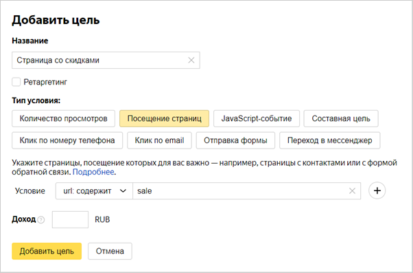 Цели позволяют отслеживать конкретные действия посетителей сайта, например: