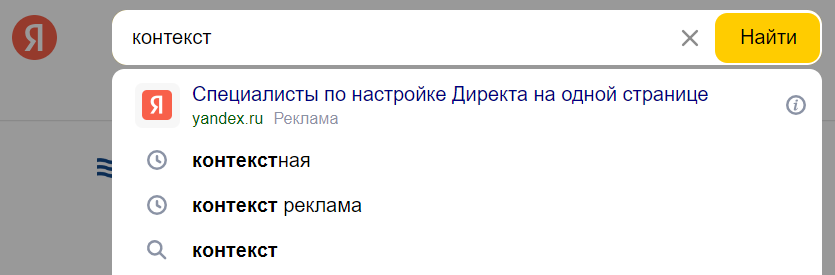Öneri reklamı, kullanıcı arama çubuğuna bir sorgu girdiğinde öneri listesinde görünen bir reklamdır. Bu, masaüstü ve mobil arama ve Yandex uygulamasında mevcuttur. Bu format %5 daha fazla trafik getirir ve CTR’si yaklaşık %16’dır.