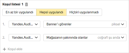 Örneğin piksel tabanlı segmenti coğrafi konum verilerine bağlı segment ile birleştirebilirsiniz. Böylece reklamı daha önce görmüş ve mağazanıza yaklaşmış olan kullanıcıları işaretlemiş olursunuz.