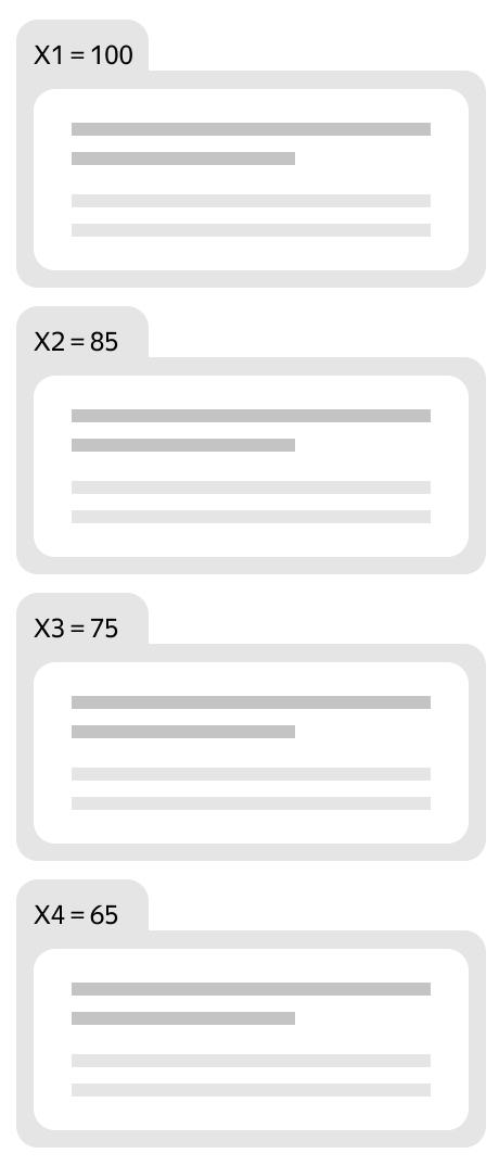 Dört reklamveren, üç reklam için, yani üç pozisyon için blokta gösterim için rekabet eder. Teklifleri 10, 7, 5 ve 2 lira, kalite katsayıları ve tahmini CTR’lar aynıdır. Birinci pozisyonun maksimum trafik getirdiğini, ikinci ve üçüncü pozisyonların ise sırasıyla maksimum trafiğin %85 ve %75’ini getirdiğini varsayalım.