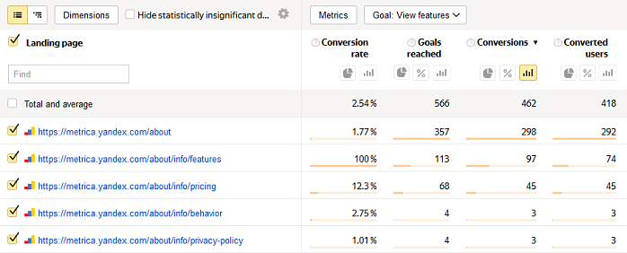 Conversion is one of the key metrics measured by Yandex Metrica.