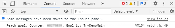 В консоли браузера могут отображаться параметры визитов, если настроена их передача в Метрику. Параметры помогают отправлять в Метрику дополнительную информацию, статистику по которой вы хотите отслеживать в отчетах.