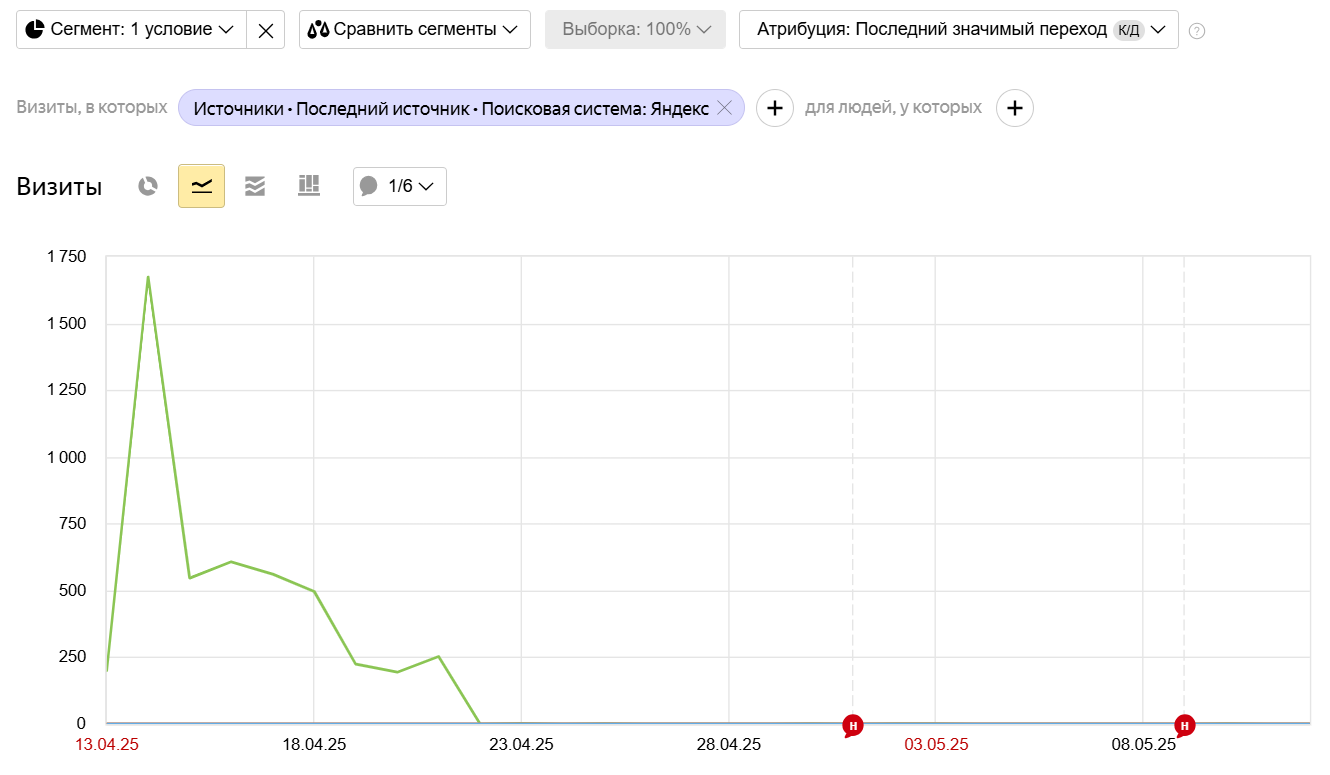 Отчет поддерживает все настройки, доступные в Яндекс Метрике.
