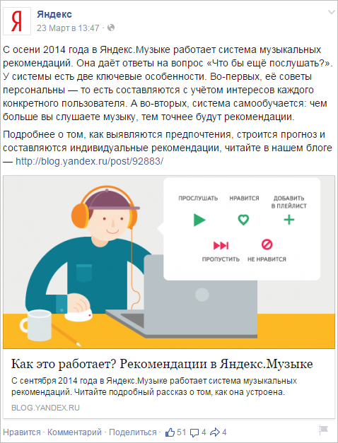 Кроме построения превью, стандарт Open Graph могут использовать разработчики приложений для публикации действий пользователей в Facebook *. В таких публикациях можно указывать действующее лицо (пользователя), объект, действие с этим объектом и название приложения, с помощью которого это действие было произведено.