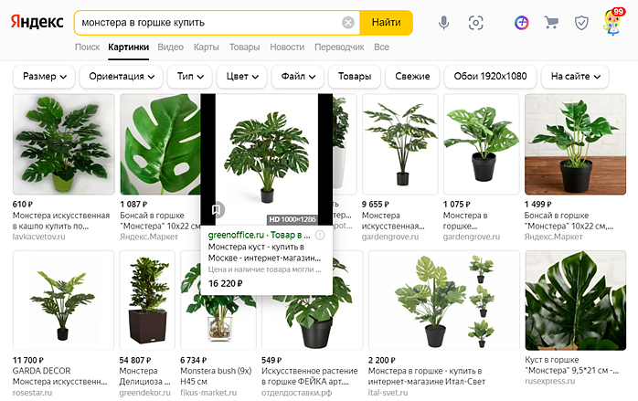 Товары в Яндекс Картинках