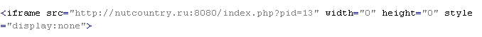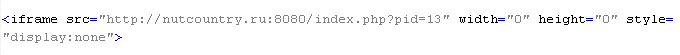 Вердикт означает, что на странице присутствует тег <iframe> с атрибутами width и height со значениями от 0 до 2, либо код JavaScript, который при выполнении добавляет этот тег на страницу. Атрибут src тега содержит доменное имя, с которого распространяется вредоносное ПО. Тег содержит дополнительные атрибуты: frameborder=0, style="VISIBILITY:hidden", style="display:none".