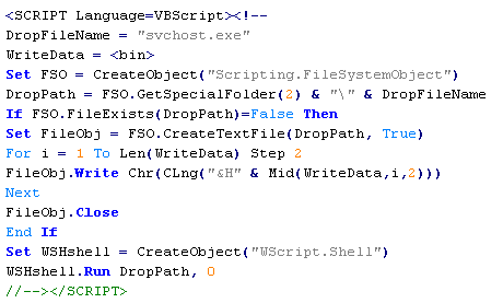 Вердикт означает, что на странице присутствует обфусцированный VBScript-код, в случае успешного выполнения которого на компьютере пользователя создается и запускается исполняемый файл.