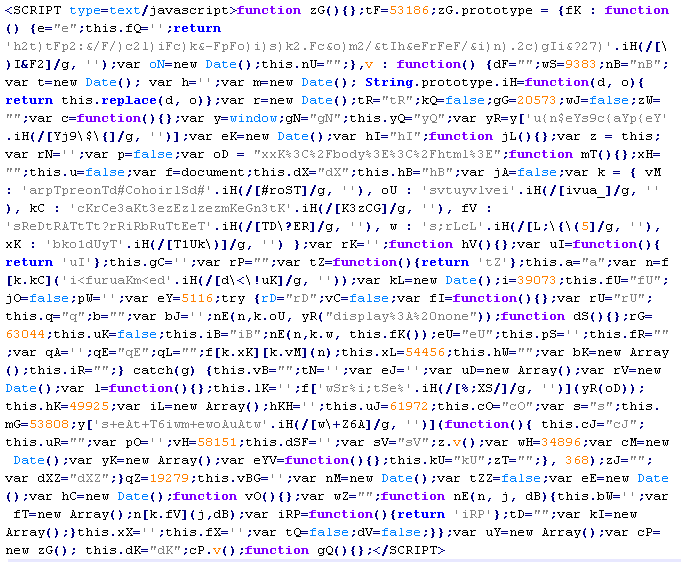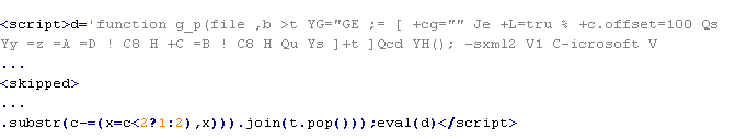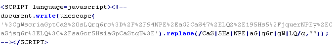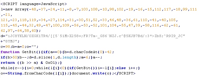 Пример вредоносного кода, по которому выносится вердикт Troj/JSRedir-GS: