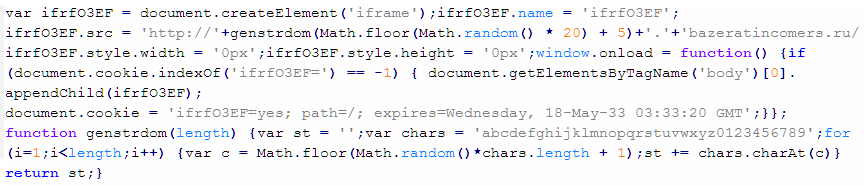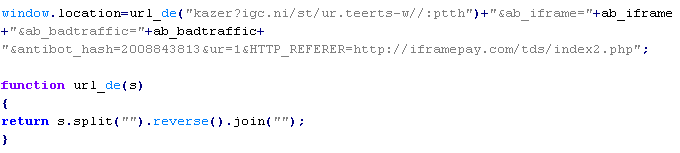 Пример вредоносного кода, по которому выносится вердикт Troj/JsRedir-OT:
