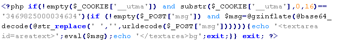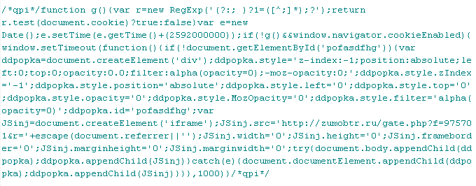 В рамках этого заражения на сайтах часто присутствует вредоносный php-код вида