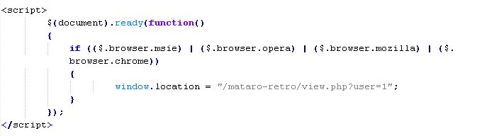 Пример вредоносного кода, по которому выносится вердикт Troj/JSRedir-MX: