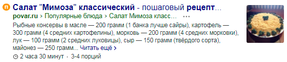 Размечая данные на своем сайте с помощью схемы Recipe вы можете принять участие в партнерской программе Яндекса для владельцев кулинарных сайтов. Данные отображаются только после проверки службы контроля качества Яндекса.