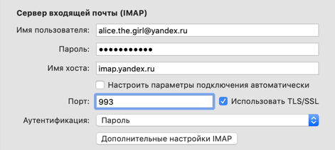 imap.yandex.ru(илиimap.ya.ru, если вы подключаетесь не из России). -