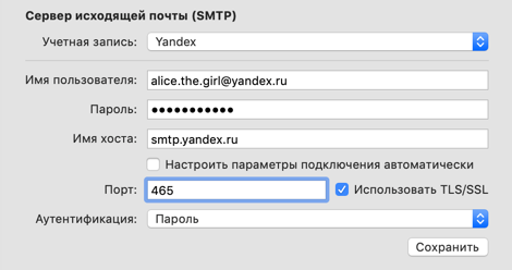 imap.yandex.ru(илиimap.ya.ru, если вы подключаетесь не из России); - Сервер исходящей почты —