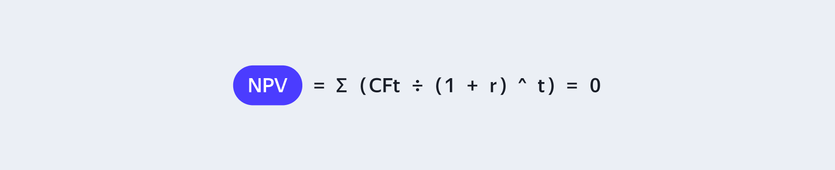 IRR — это ставка дисконтирования, при которой чистая приведённая стоимость (NPV, или Net Present Value) равна нулю. Если говорить проще, IRR — это годовая процентная доходность ваших инвестиций в проект. Это та ставка, которую ваш проект «генерирует» сам по себе.
