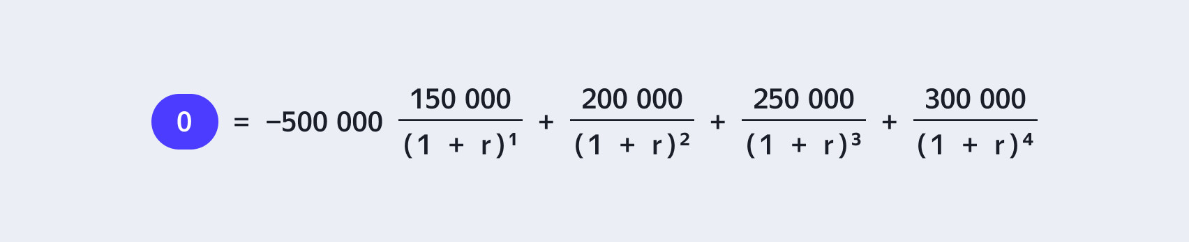 Ручной расчёт IRR используется только в простых случаях — когда проект состоит из одного вложения и нескольких равномерных поступлений.