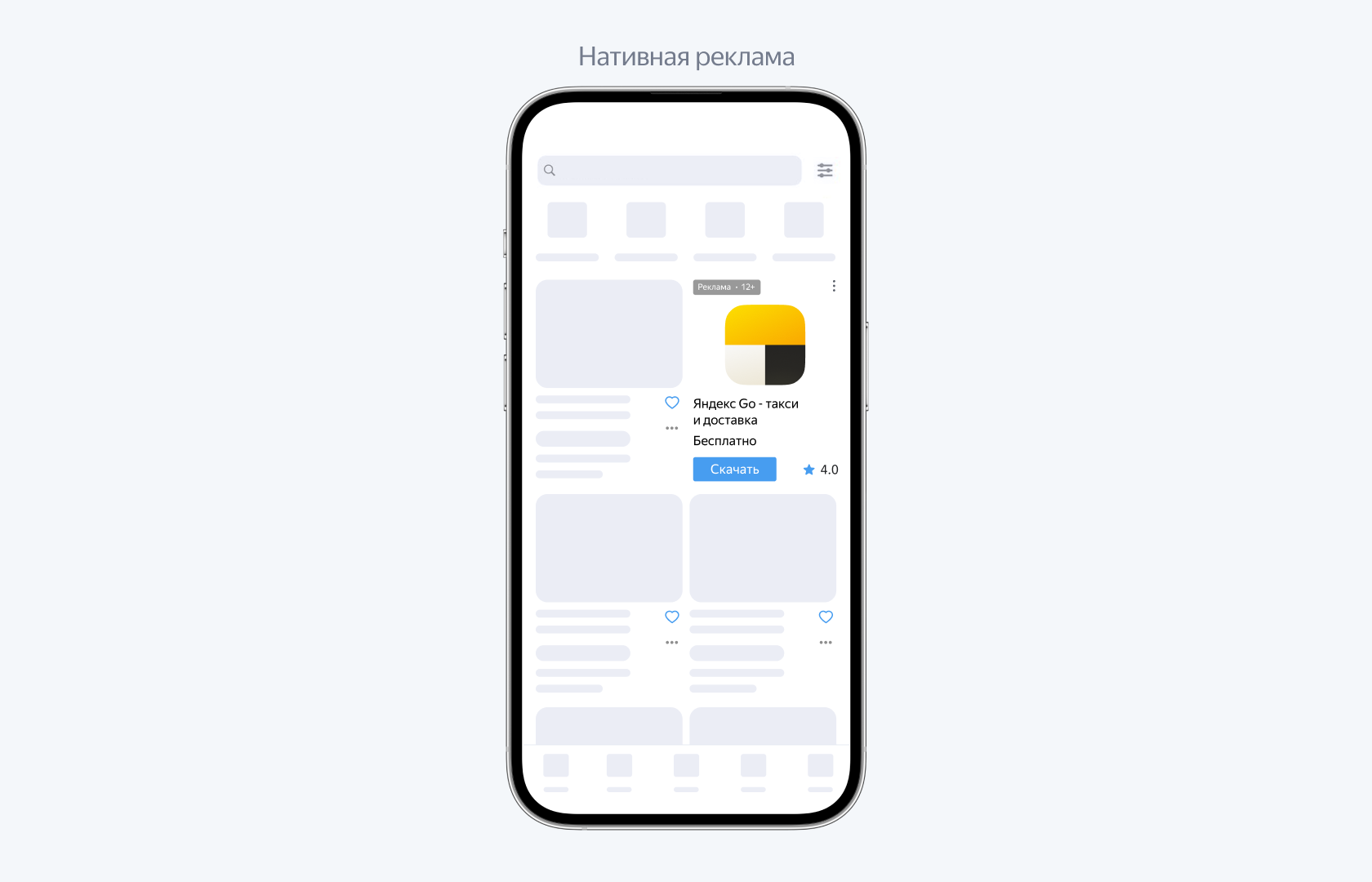 Баннеры, внешний вид которых полностью зависит от основного контента приложения. В блоке с нативной рекламой отображаются текстово-графические объявления, которые выглядят как посты в ленте, поэтому она подходит для новостных сайтов и социальных сетей. Оформить внешний вид нативной рекламы можно вручную или с помощью шаблона на стороне SDK.