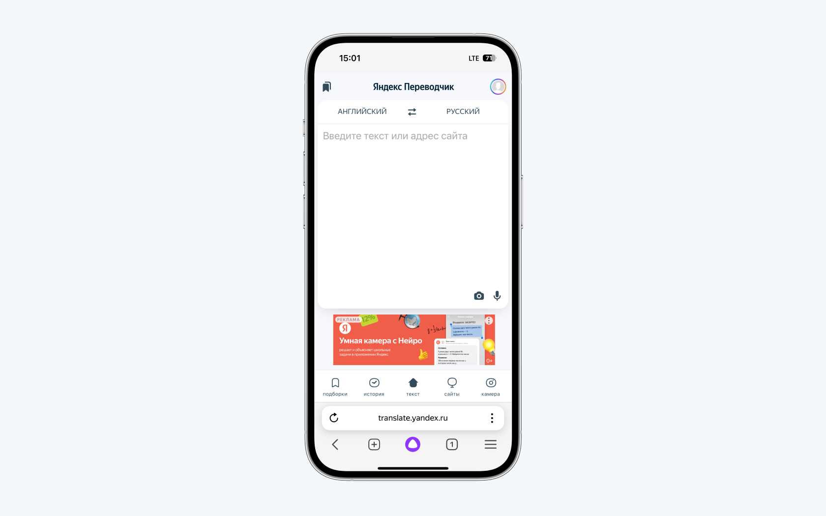 На странице Яндекс Переводчика в мобильном вебе появился специальный рекламный блок РСЯ, который показывается под результатами перевода. Он не отвлекает пользователя от его основной задачи, но остаётся достаточно заметным, чтобы привлечь внимание к сообщению рекламодателя.