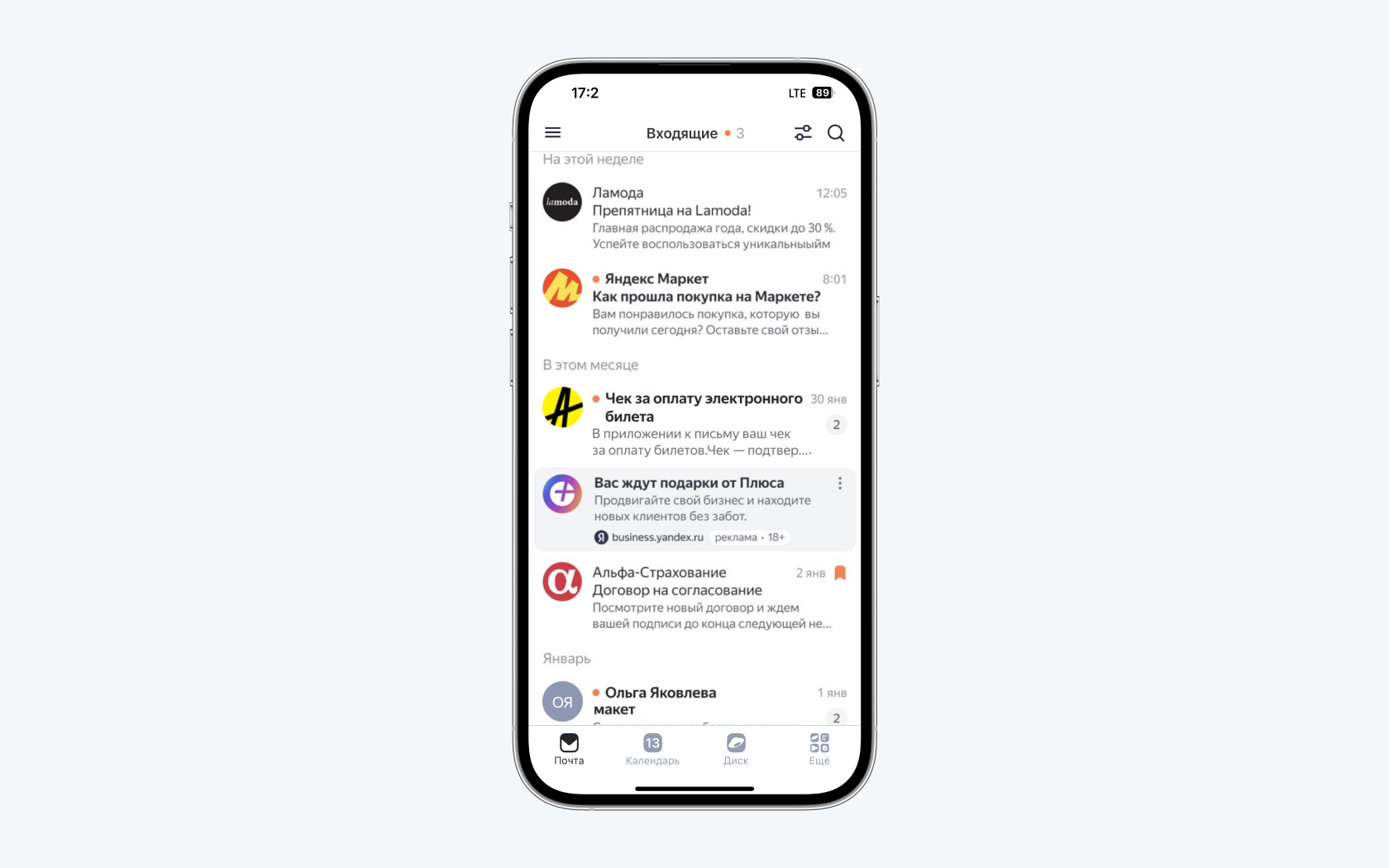 В Почте на мобильных появилось дополнительное рекламное место — прямо между письмами. Так реклама будет показана пользователям в момент, когда они проверяют почту.