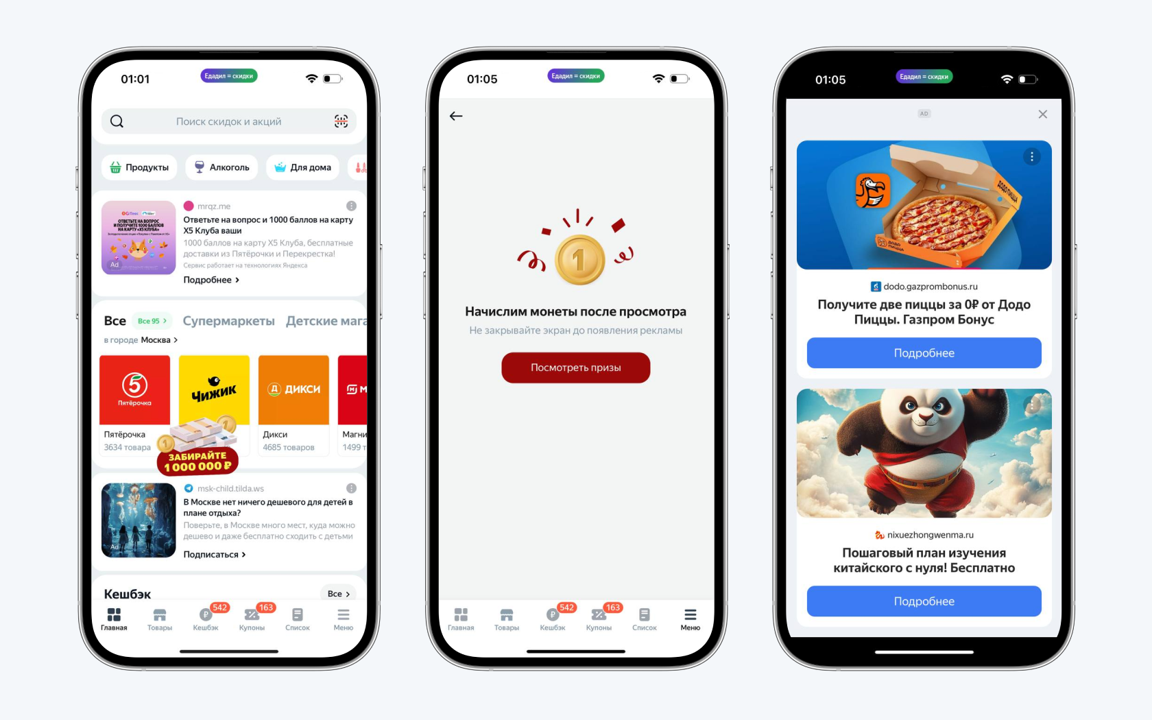 В приложении Едадил теперь доступны флайтовые игровые механики, где пользователи могут выполнять различные задания и зарабатывать игровую валюту. Игровую валюту можно потратить на гарантированные подарки или в розыгрышах ценных призов. Одно из часто встречающихся заданий в таких активация — это просмотр рекламного видео из РСЯ.