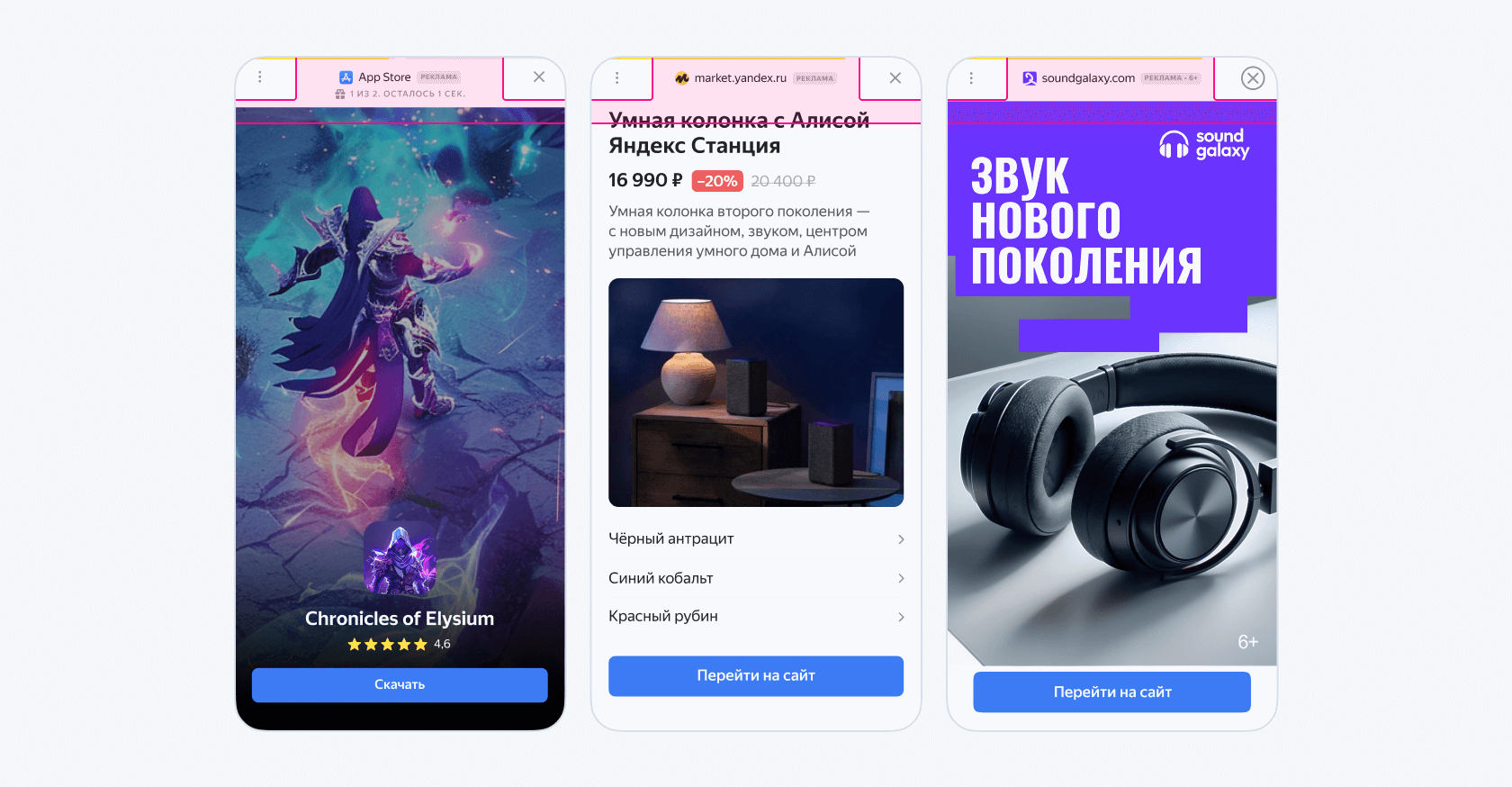 Объявления Рекламной сети показываются на множестве площадок — с разным контентом и дизайном. Чтобы ваша реклама выглядела привлекательно в любом окружении и дополняла опыт пользователей, мы регулярно добавляем новые и совершенствуем уже существующие форматы и механики.
