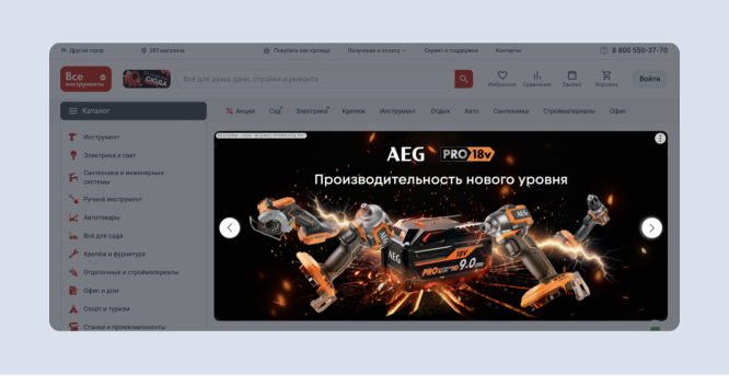 Интернет-магазин ВсеИнструменты.ру разместил на первом экране сайта большой слайдер на основе шаблона Banner Image.