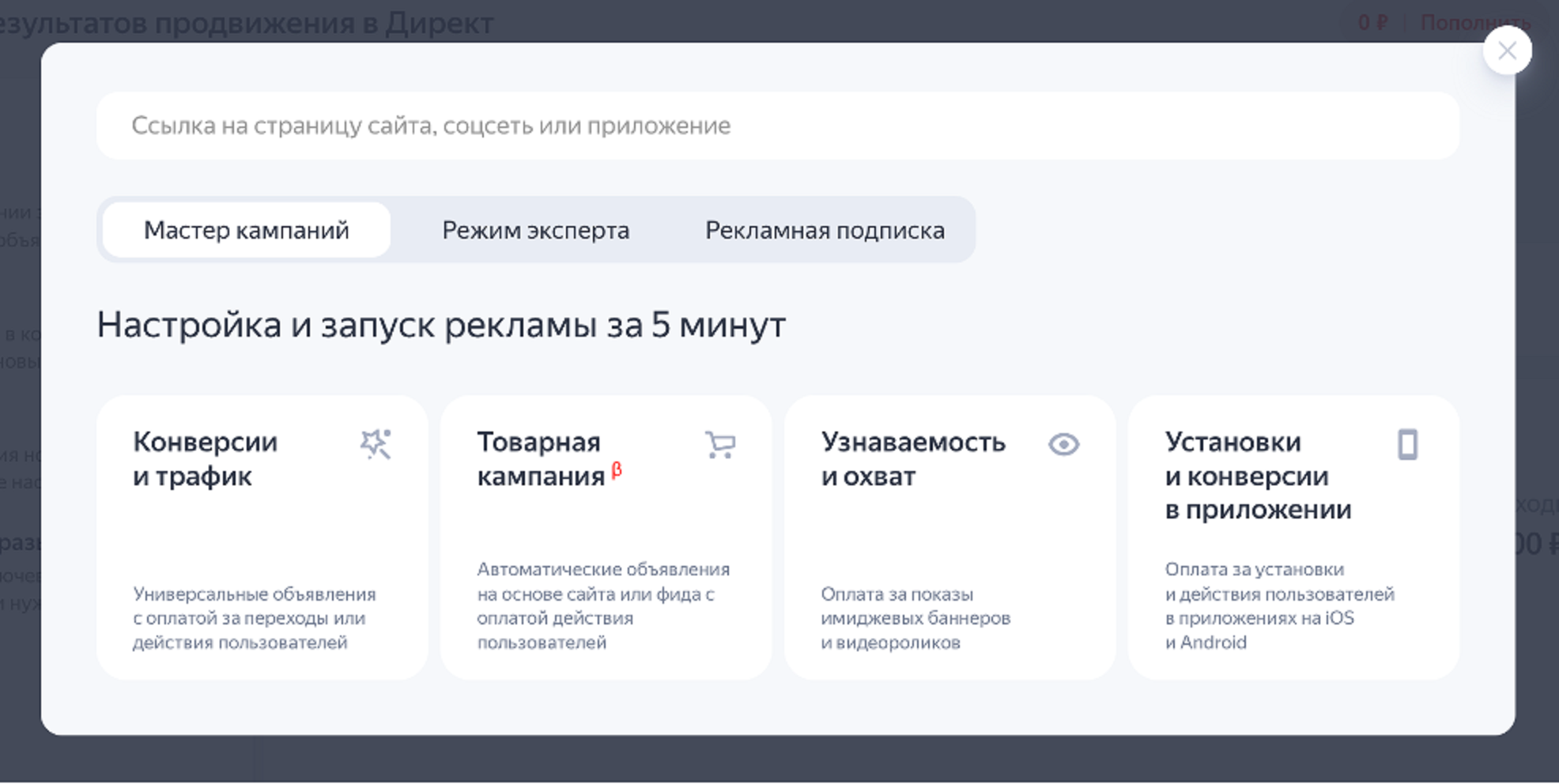 Для быстрого старта запустите продвижение с помощью Товарной кампании: