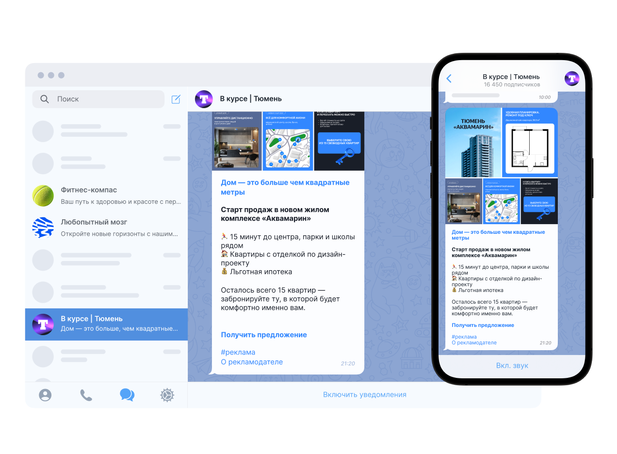 Если вы хотите органично встроить своё рекламное объявление в определённые каналы и написать текст в их стилистике, удобнее использовать формат рекламы в конкретных каналах.