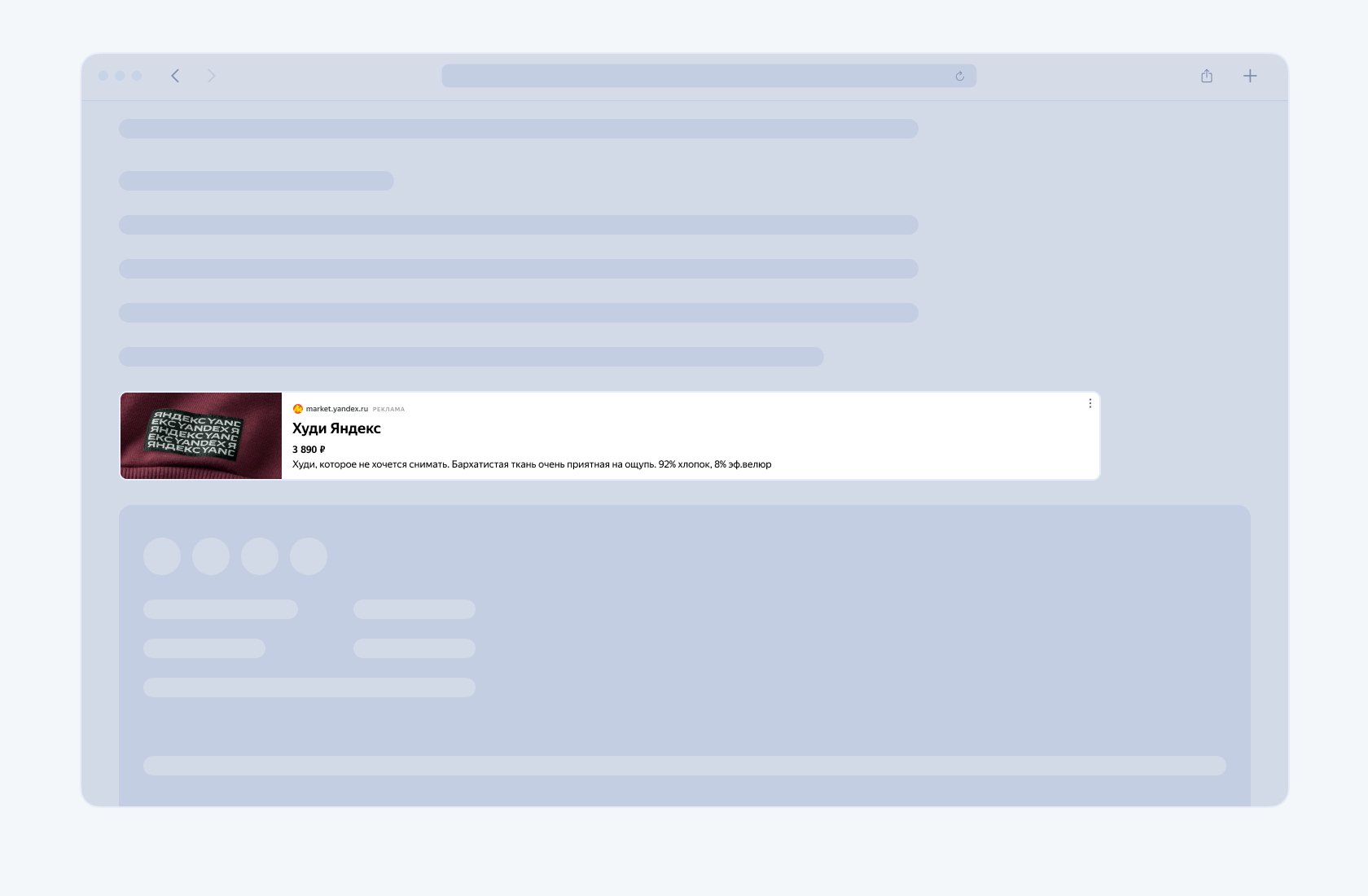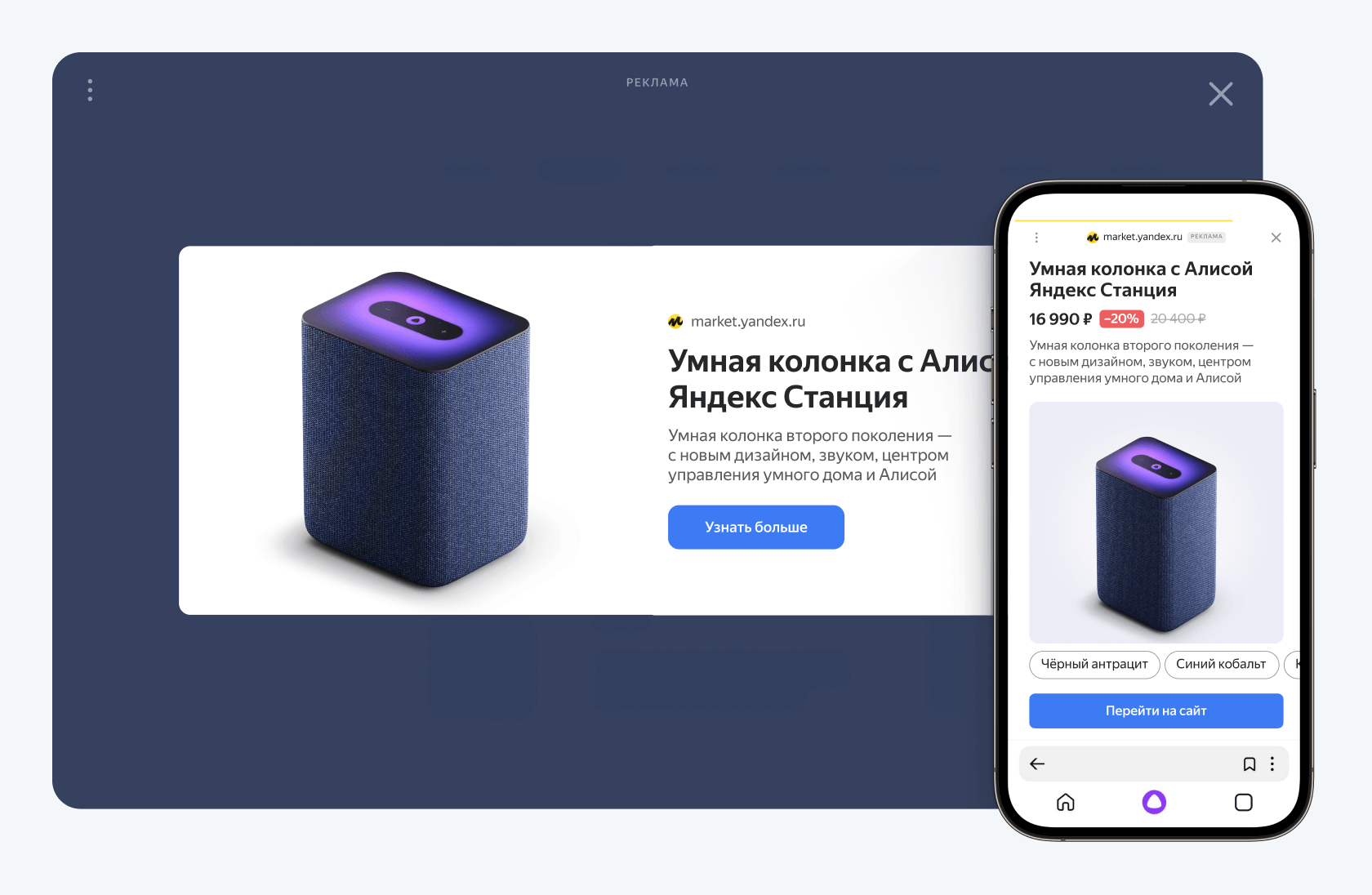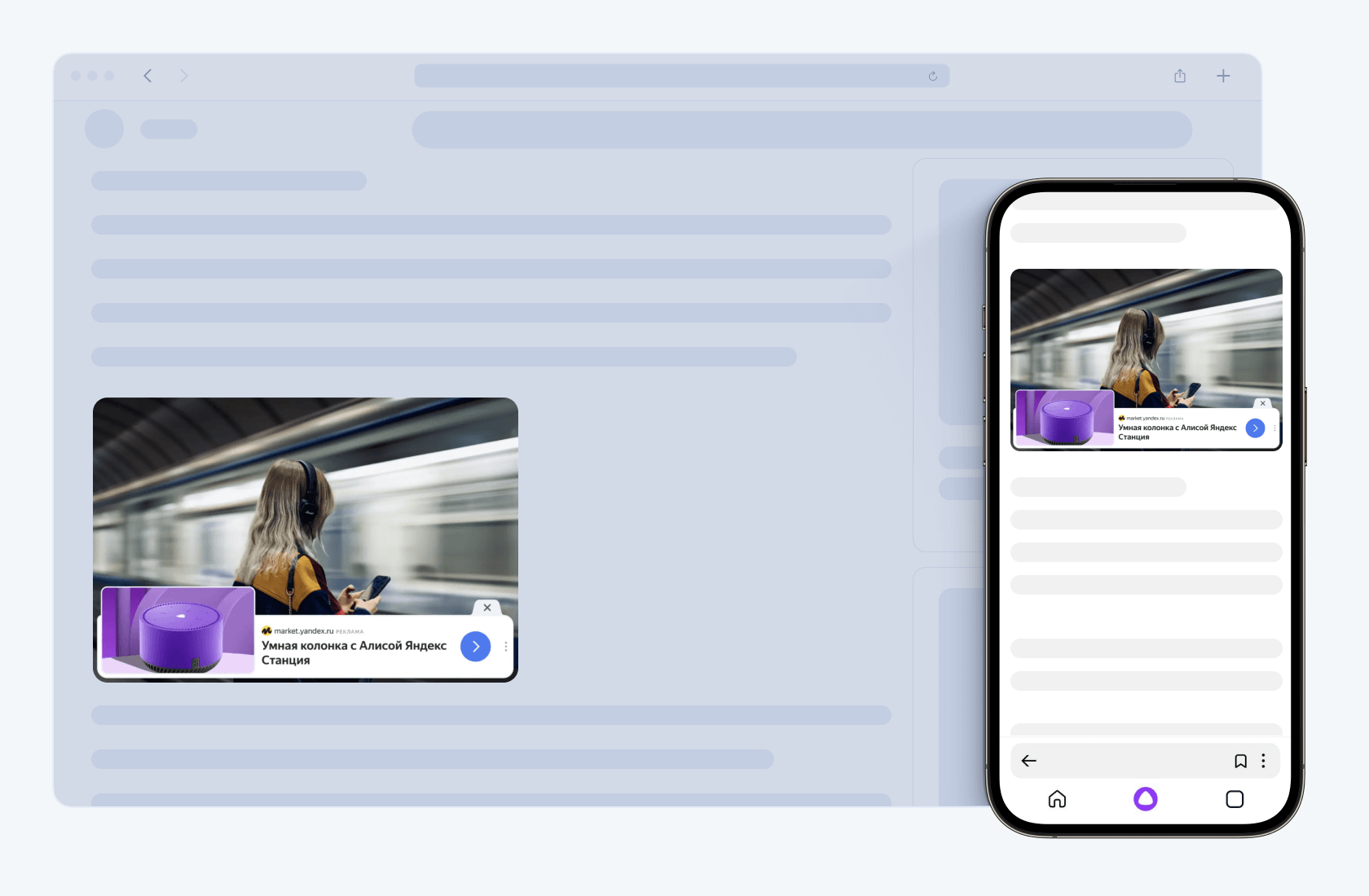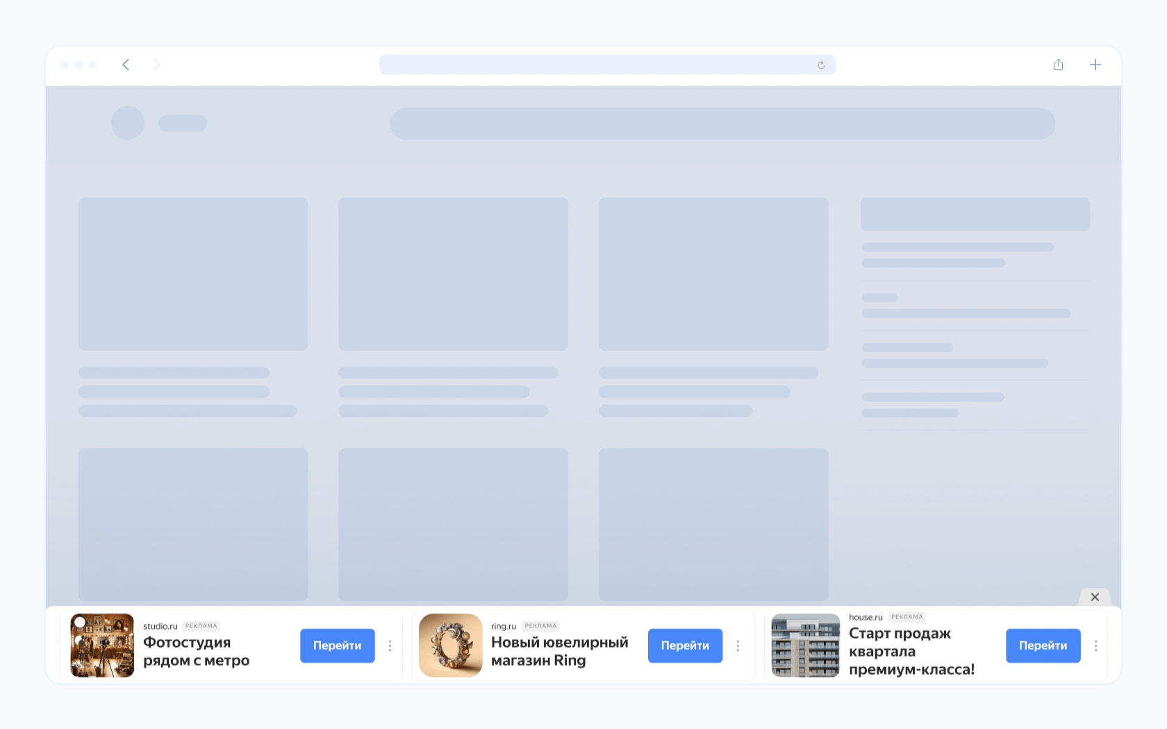 Или используйте Ленту. Этот формат предлагает пользователю потенциально интересные объявления, что значительно увеличивает вероятность взаимодействия с ней. Лента помогает органично встроить рекламу в общий дизайн страницы, делает объявления менее навязчивыми, но эффективными.