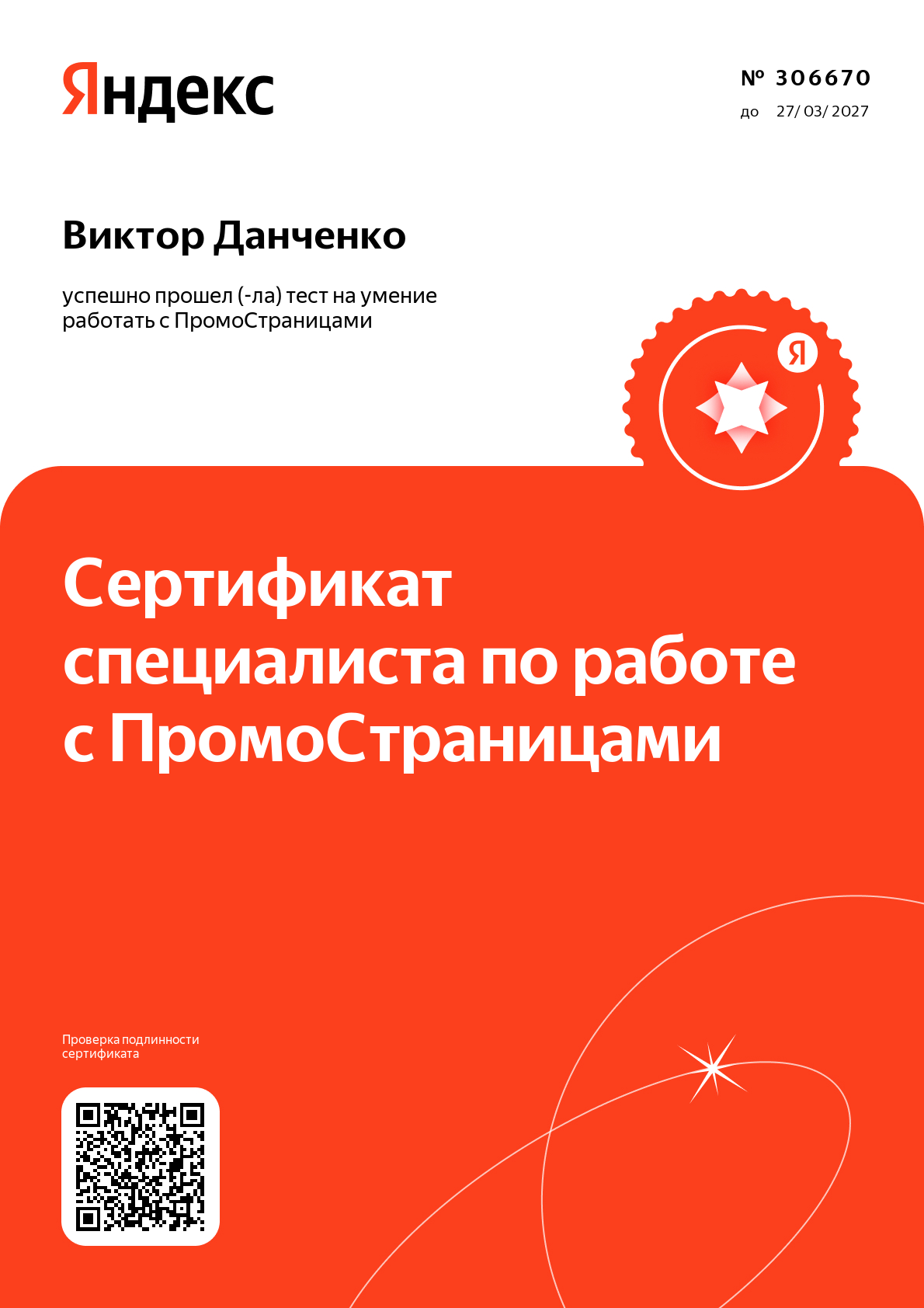 На странице собраны все выданные Яндексом сертификаты и достижения специалиста